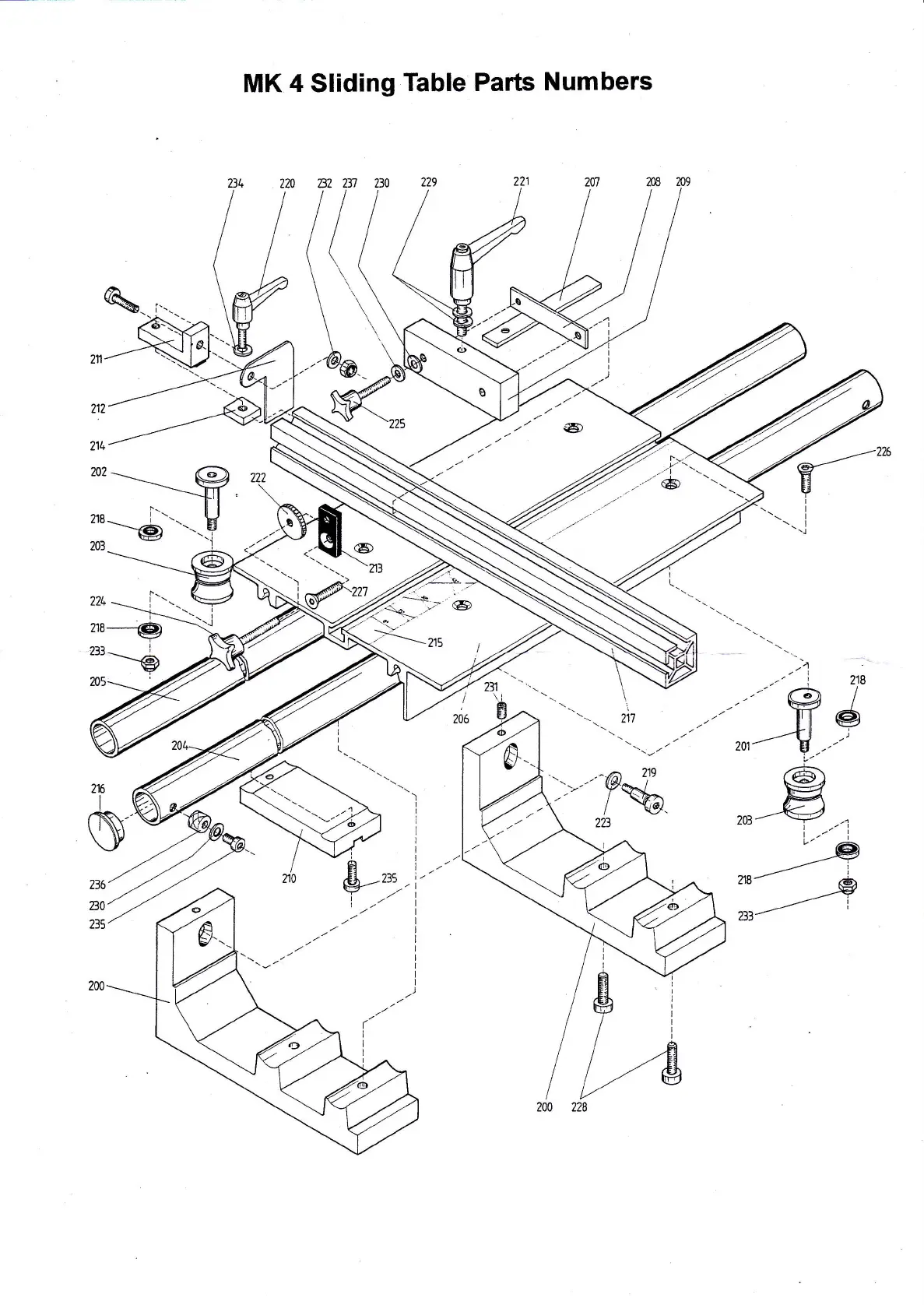Hegner Mk 4 - MK 4 Sliding Table Parts Identification; Parts Numbers Diagram