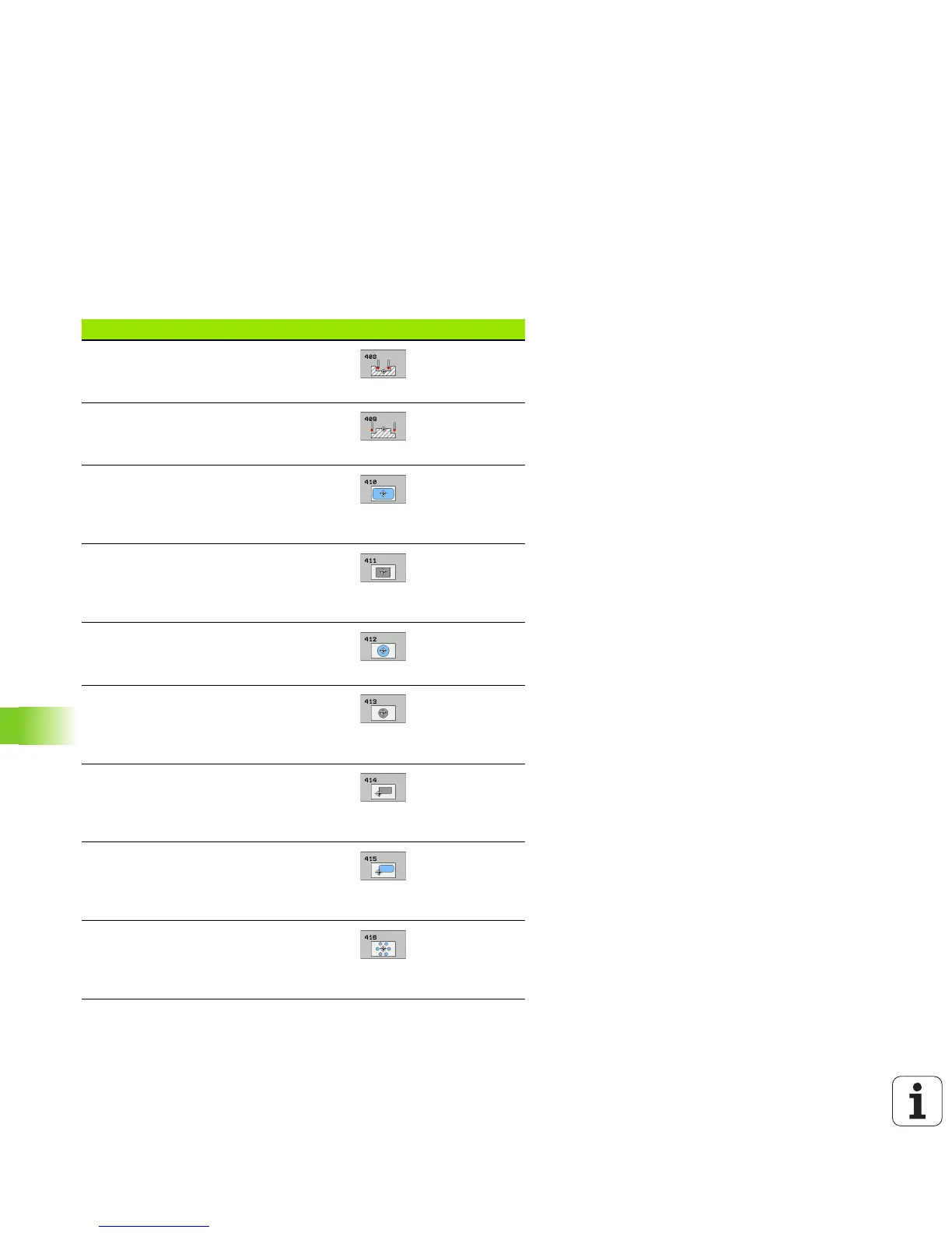 The TNC offers twelve cycles for automatically finding reference