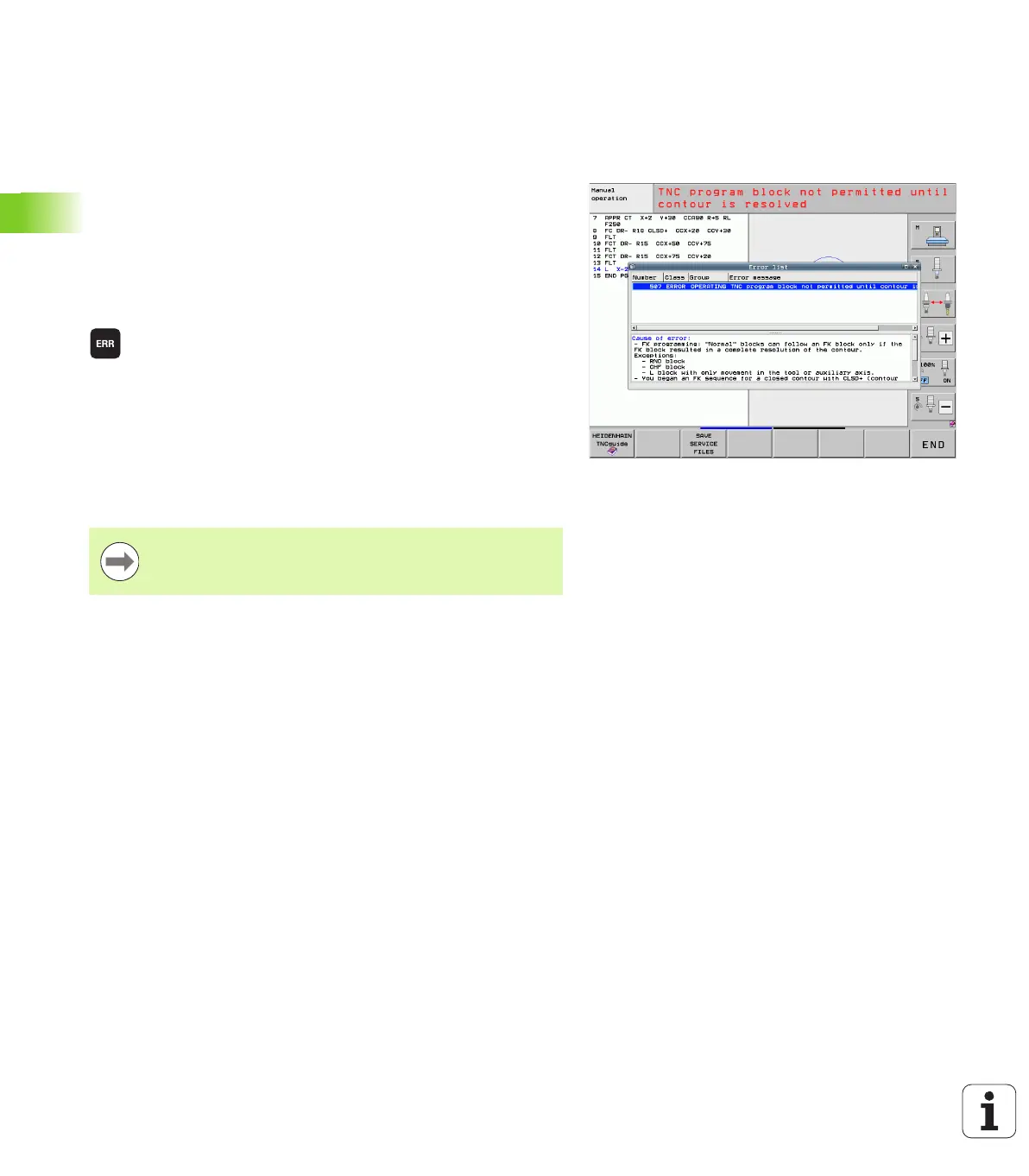 all current error messages. The TNC shows errors both from the NC