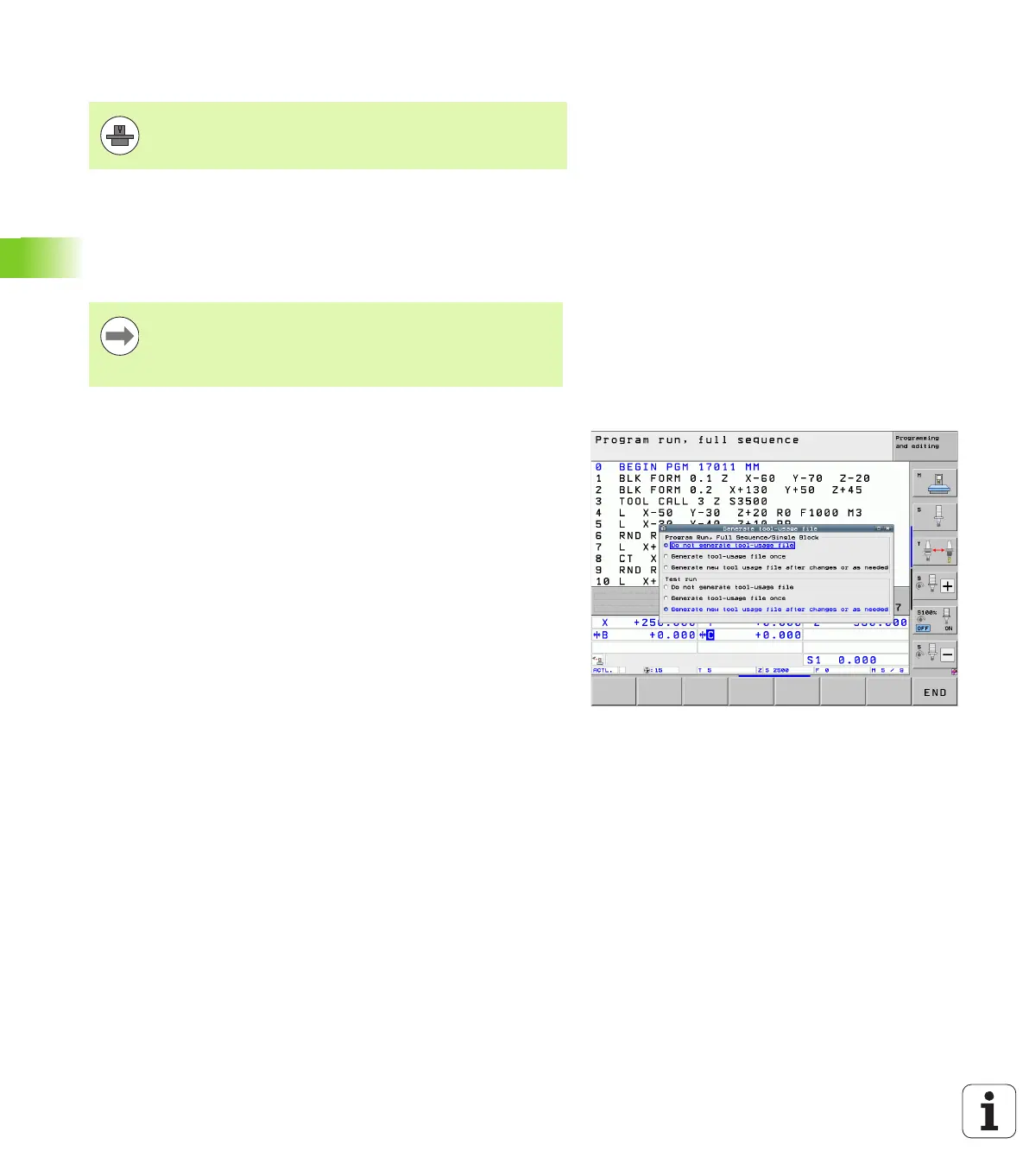 The TNC generates a tool usage file once with the next NC start or