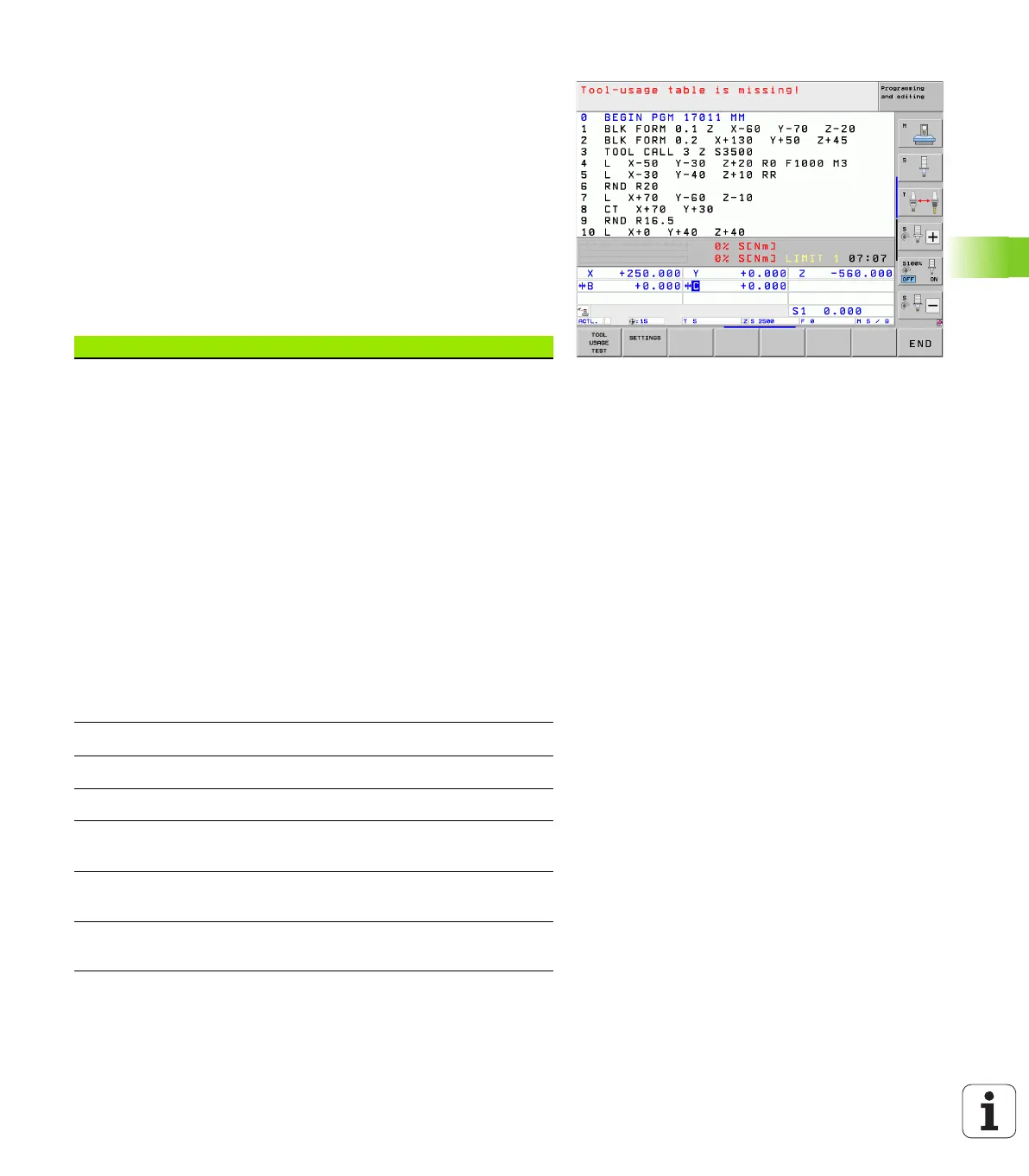 After you have pressed the TOOL USAGE TEST soft key, the TNC