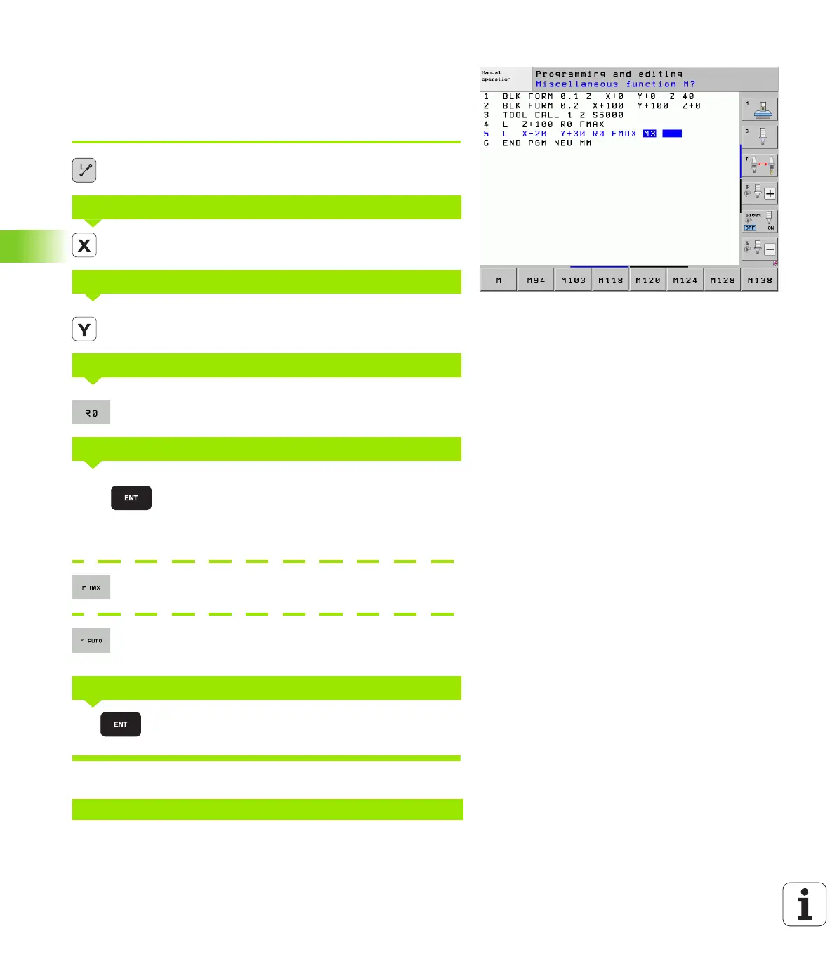 Enter a miscellaneous function (here, M3), and