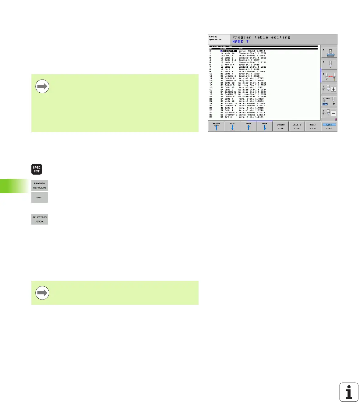 Workpiece materials are defined in the table WMAT.TAB (see figure).