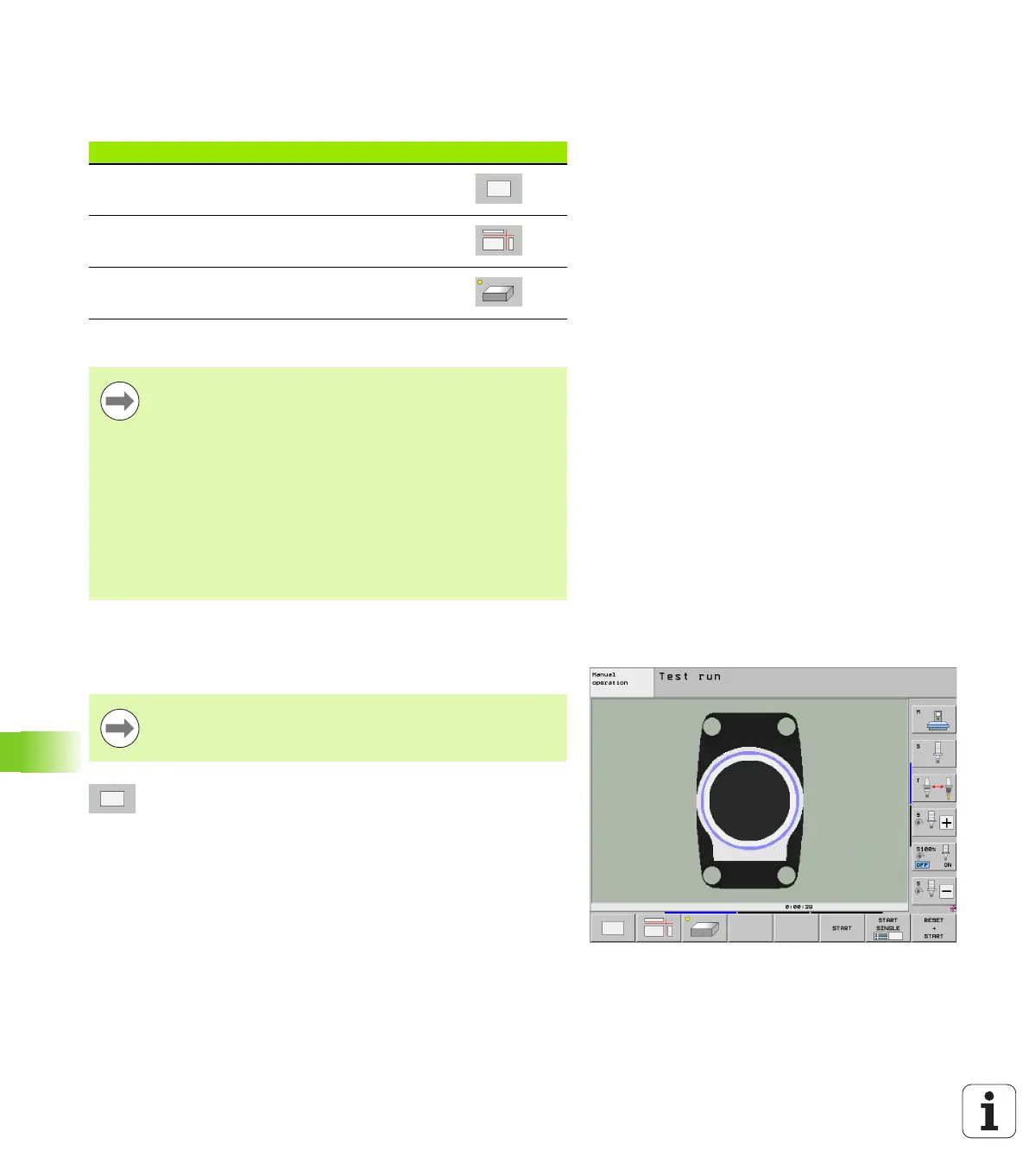 The TNC displays the following soft keys in the Program Run and Test