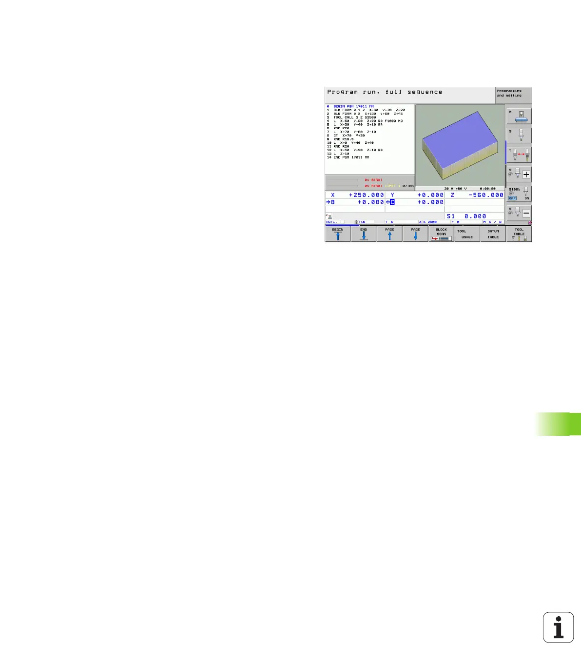In the Program Run, Full Sequence mode of operation the TNC