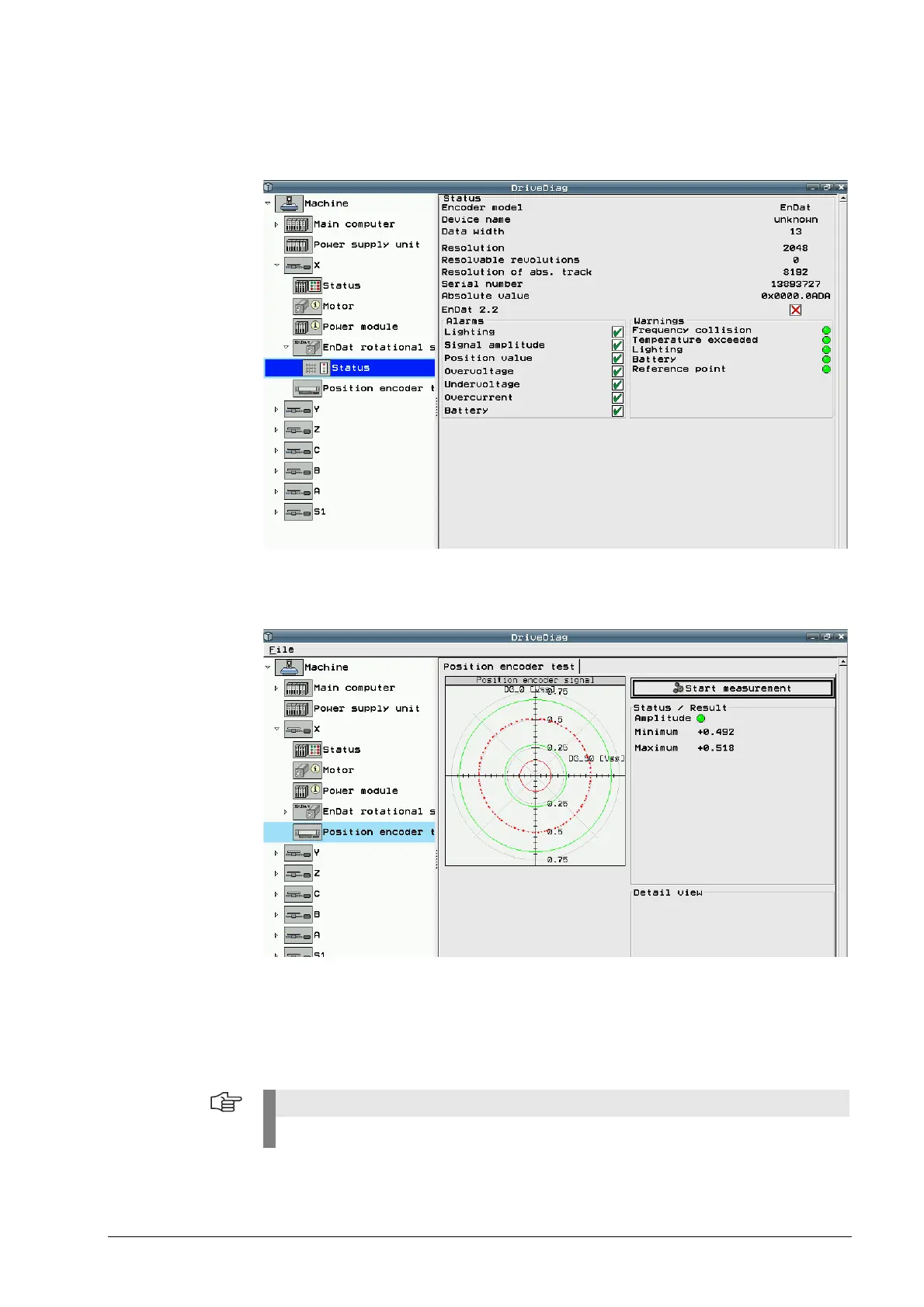 The integrated diagnosis functions or DriveDiag also offer a simple position encoder test: