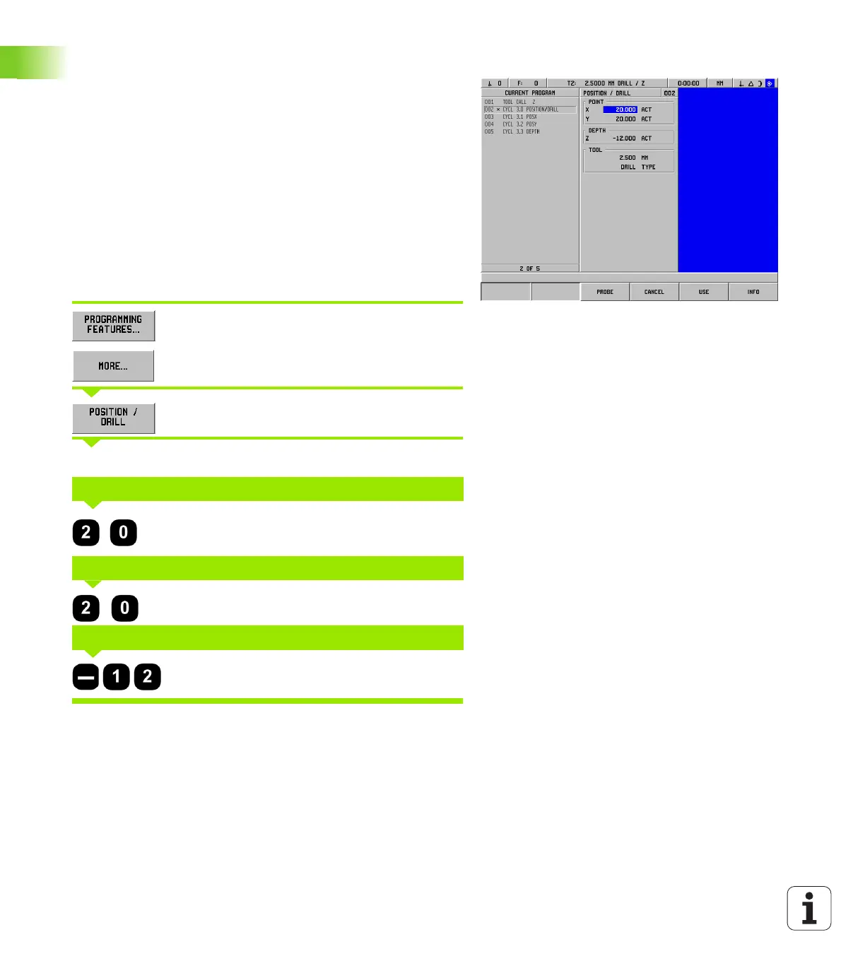 Select the cycle with the POSITION/DRILL soft key, and enter the