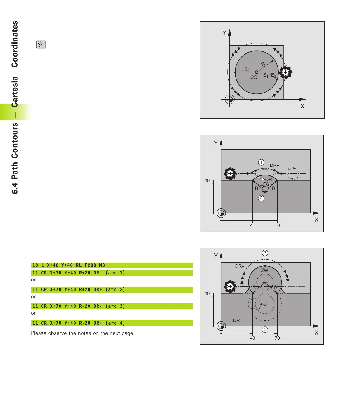 11 CR X+70 Y+40 R+20 DR+ (arc 2)