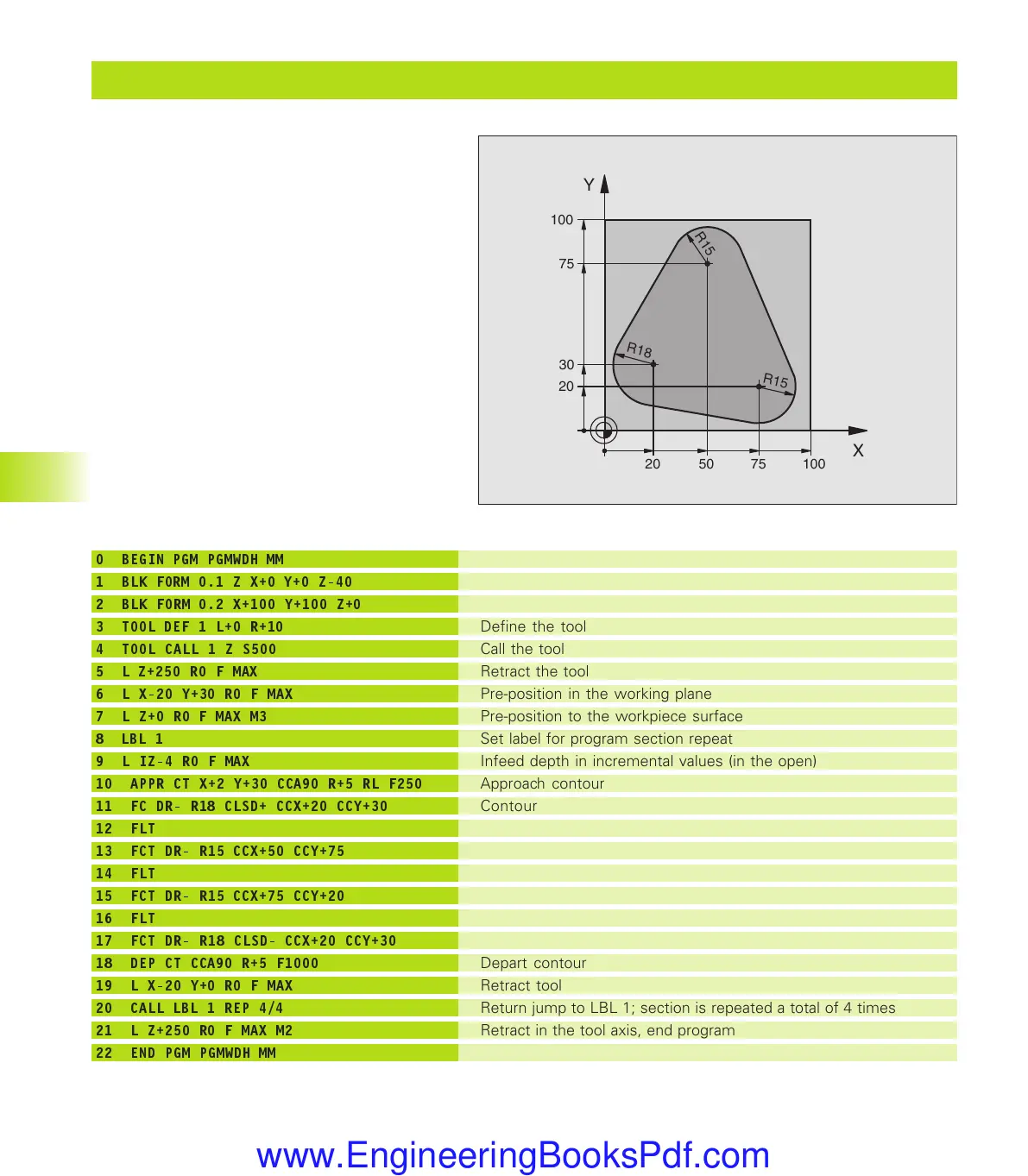 10 APPR CT X+2 Y+30 CCA90 R+5 RL F250