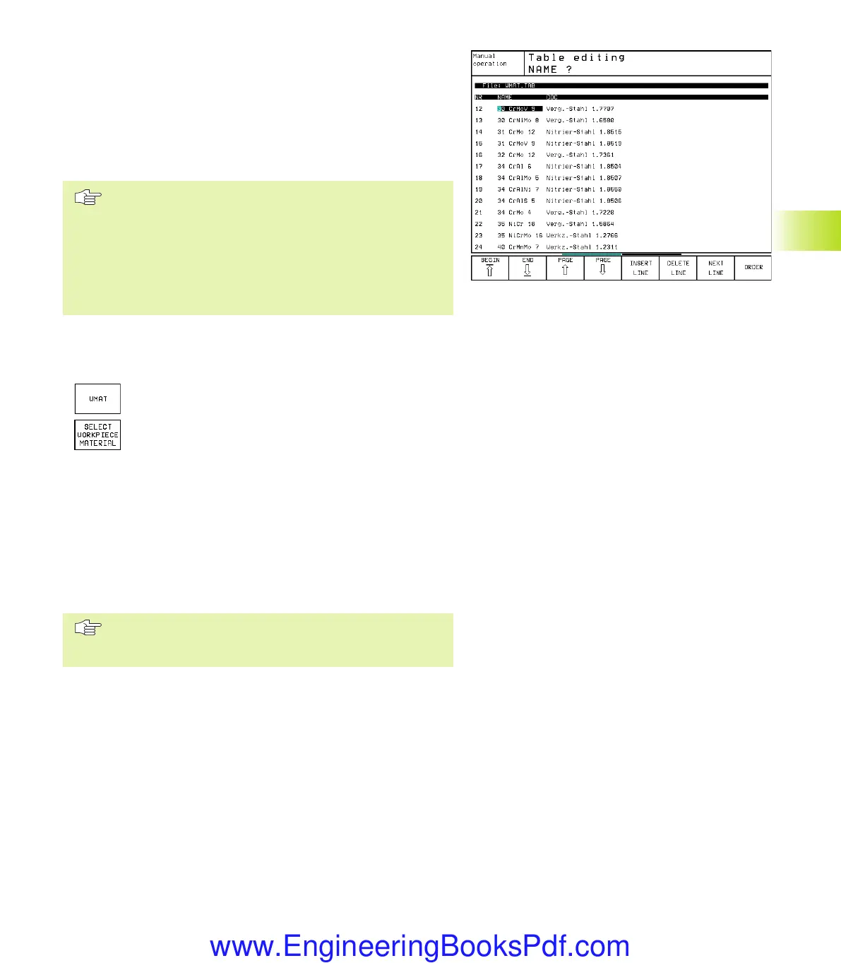 SELECT WORKPIECE MATERIAL soft key and the TNC