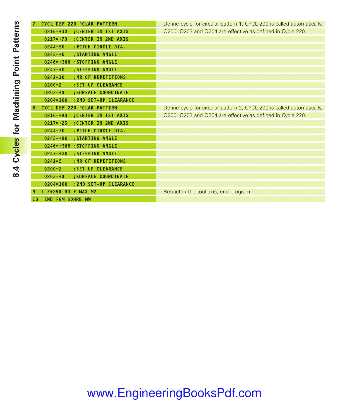 Define cycle for circular pattern 2, CYCL 200 is called automatically,