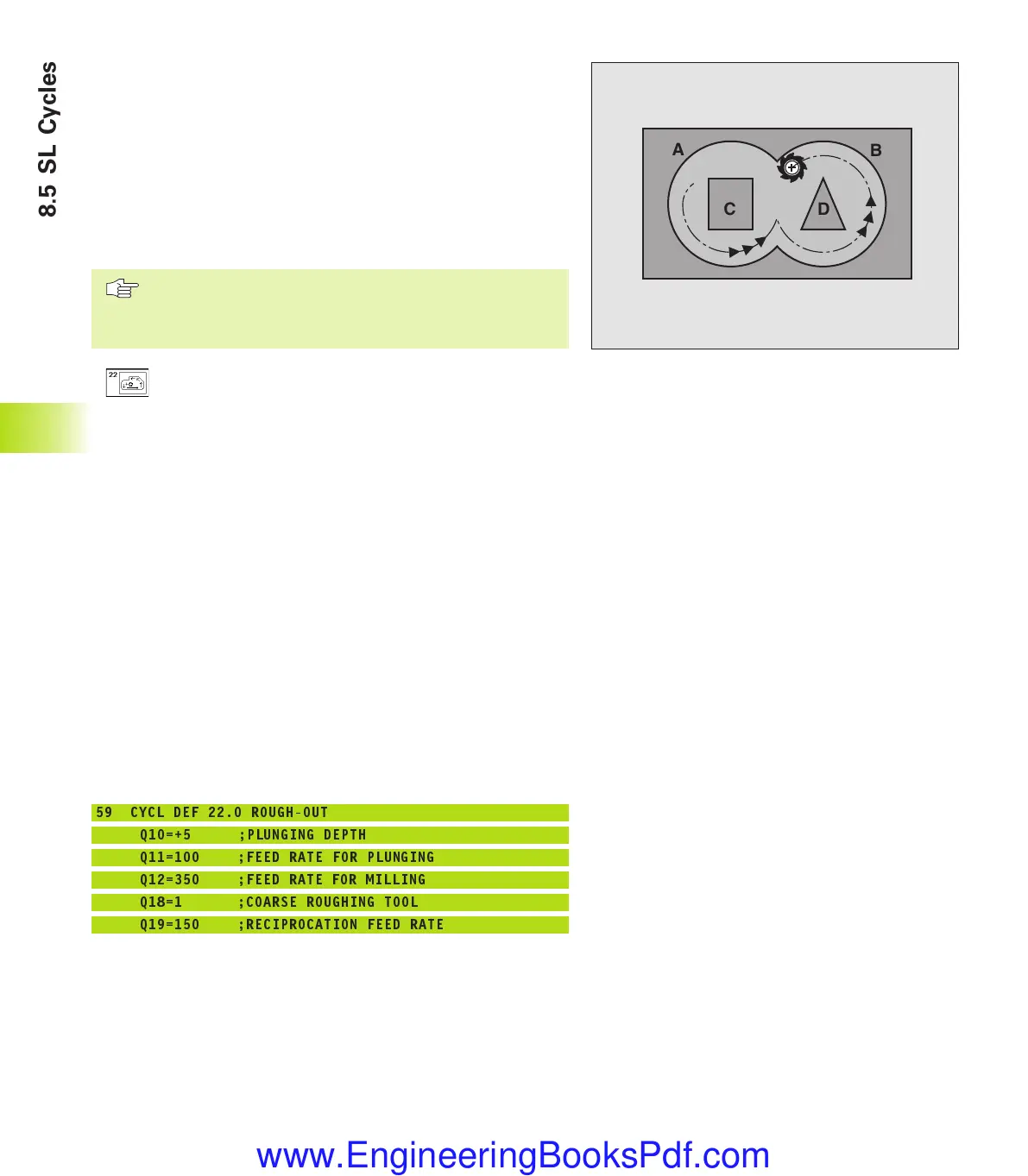 4 Then the pocket contour is rough-milled and the tool is retracted
