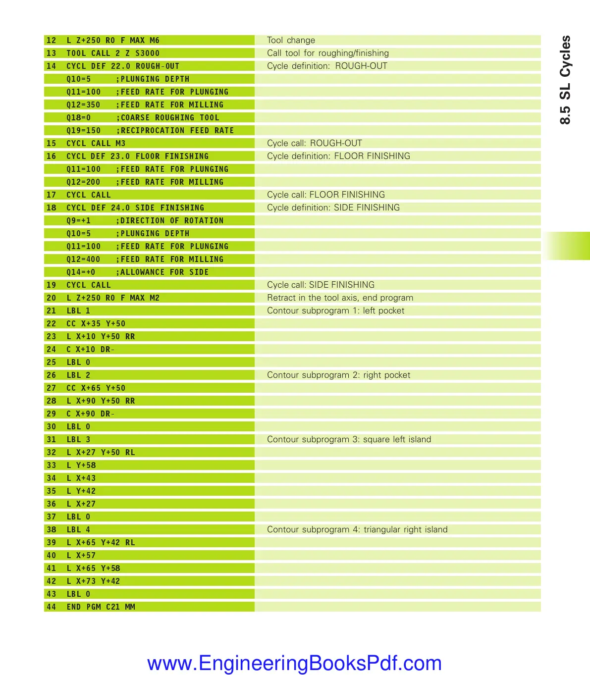 Contour subprogram 1: left pocket