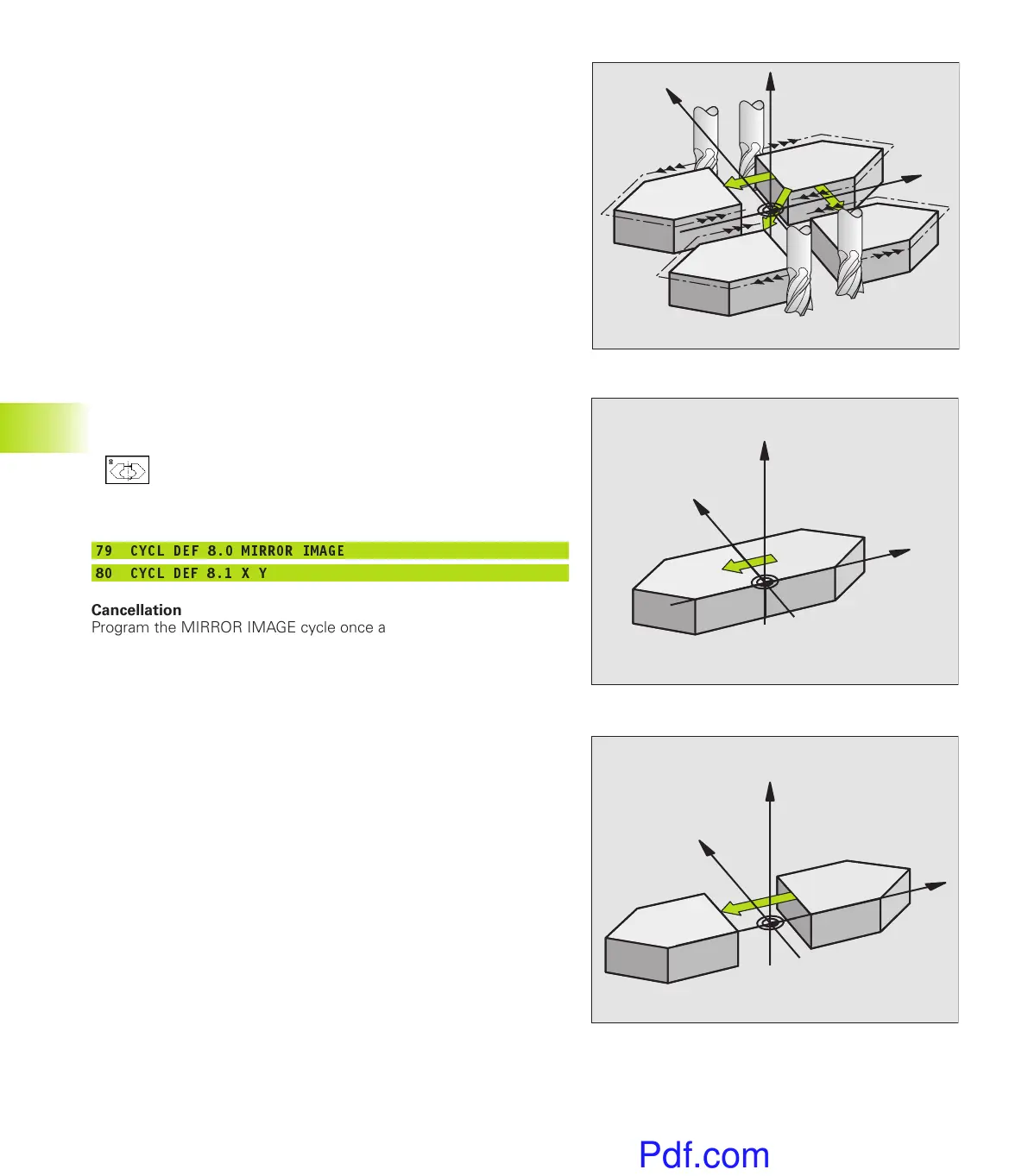 The MIRROR IMAGE cycle becomes effective as soon as it is