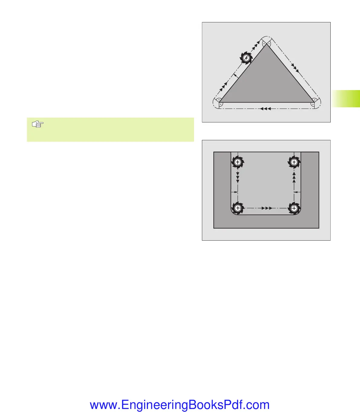 inside corners under radius compensation. From this point it then