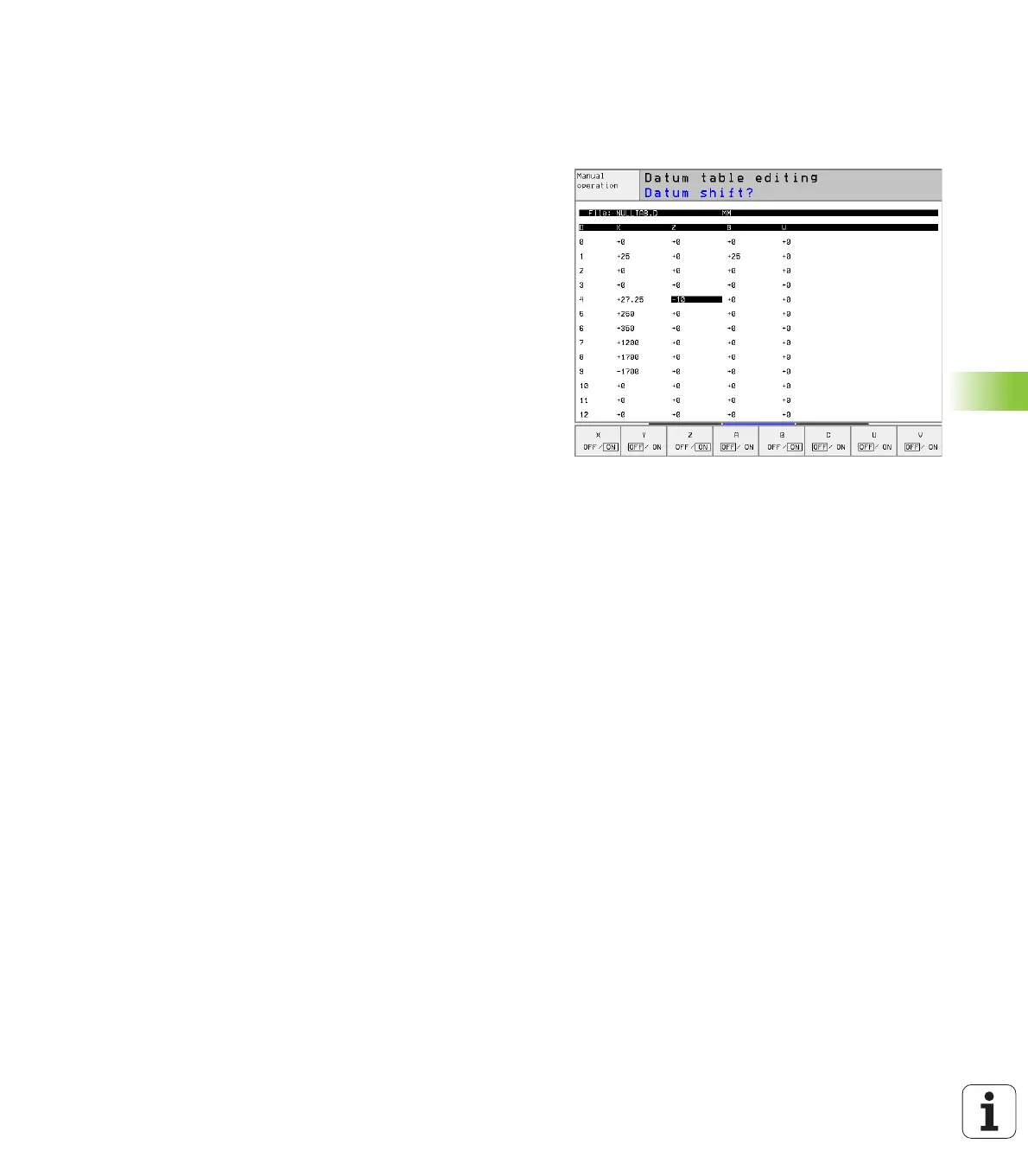 the DATUM TABLE soft key. You can then use the same editing