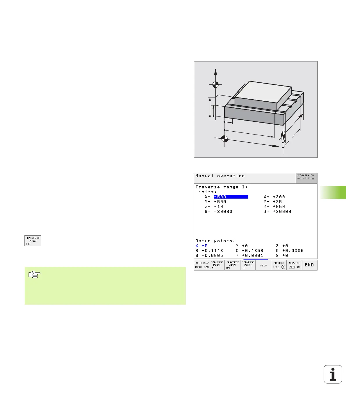 separately using the soft keys TRAVERSE RANGE (1) to TRAVERSE
