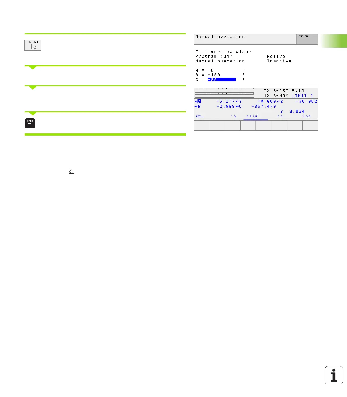 machine axes in accordance with the tilted axes, the status display