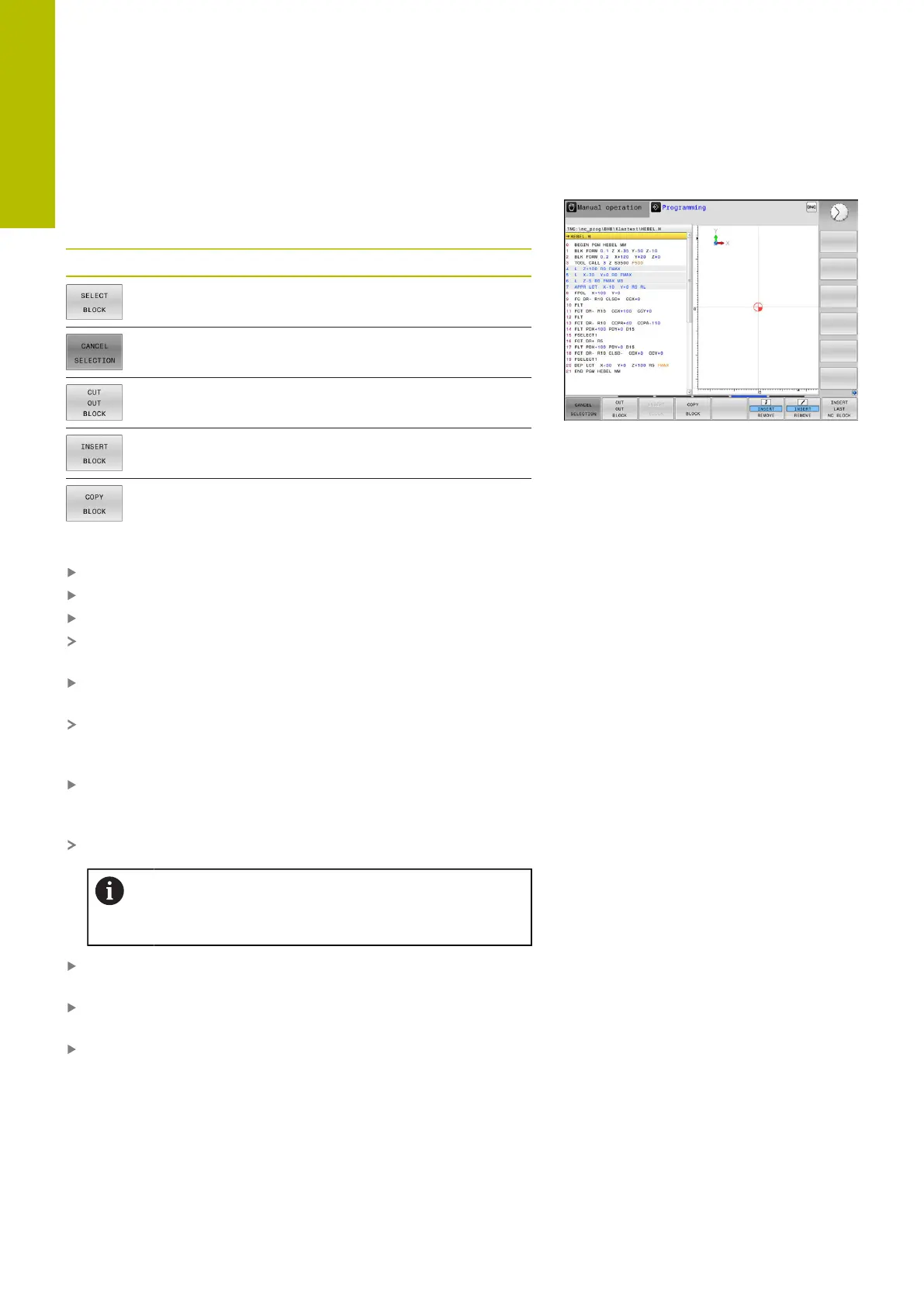 Mark the first NCblock: Press the SELECT BLOCK soft key.