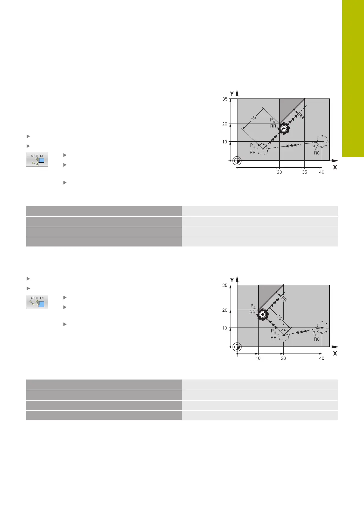 8 APPR LT X+20 Y+20 Z-10 LEN15 RR F100