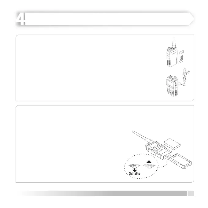 Bringen Sie den Gürtelclips wie auf Abbildung 1 an der Hinterseite
