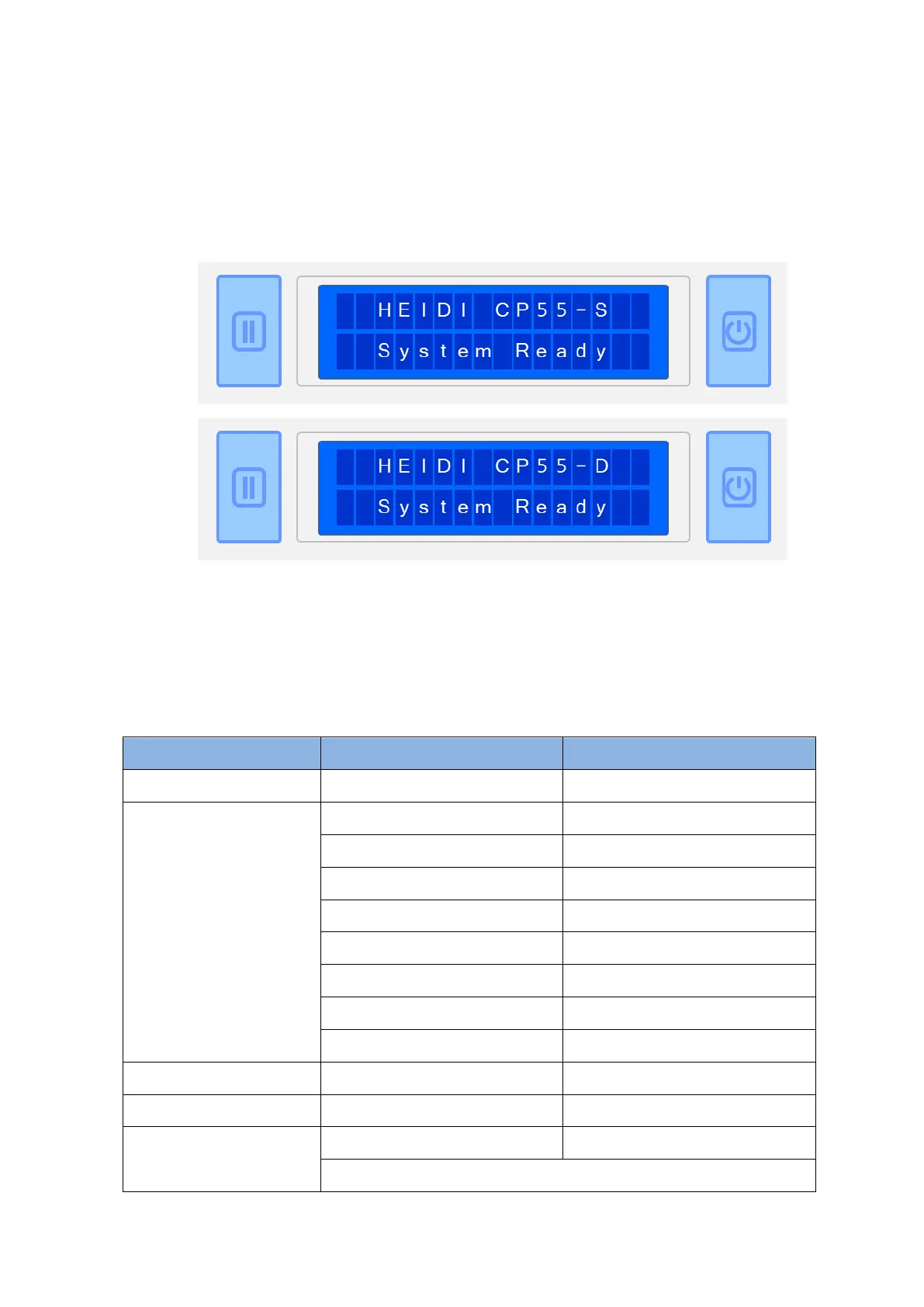 as shown in the Figure 7. The main LCD message of CP55 printer is ‘HEIDI CP55-S’. On the