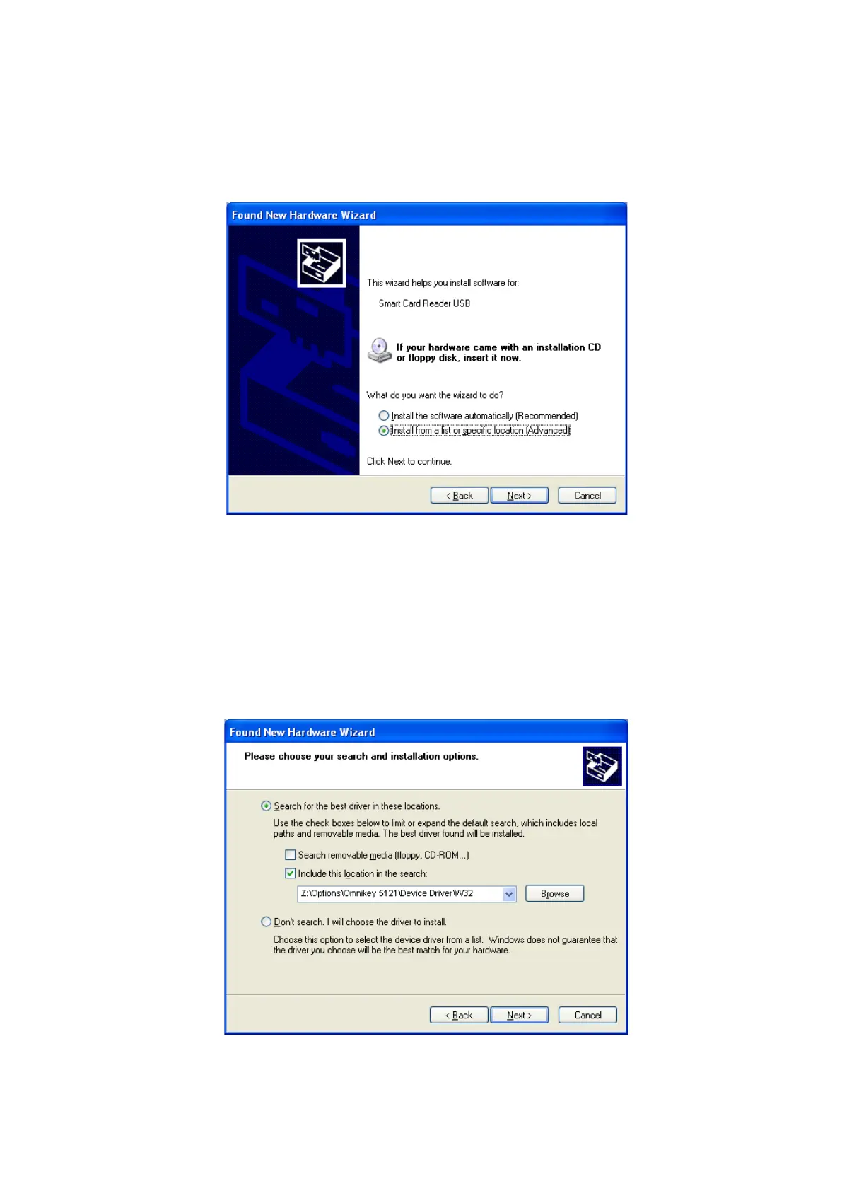 Insert the smartcard installation CD and find “\Options\ Omnikey 5121” directory on