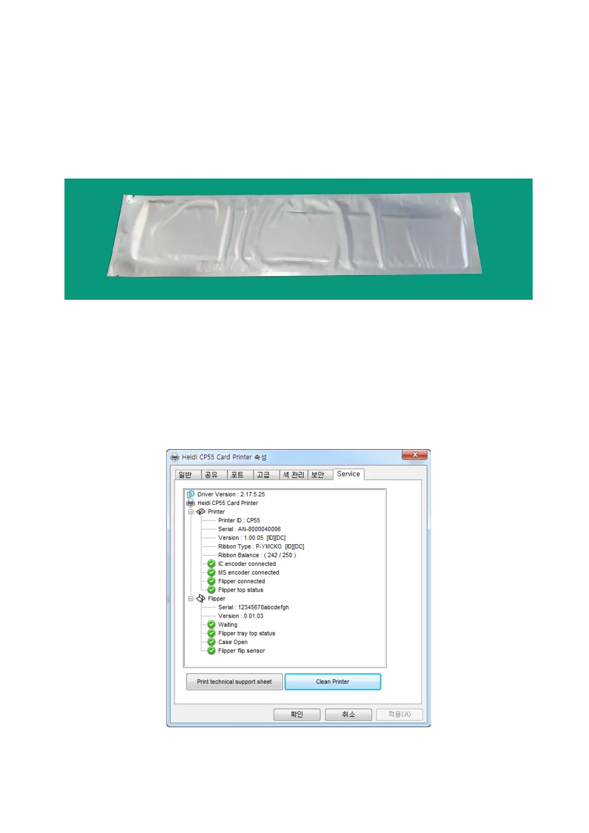 If the exclusive cleaning card is ready, click the “Clean Printer” in the service tab of CP55