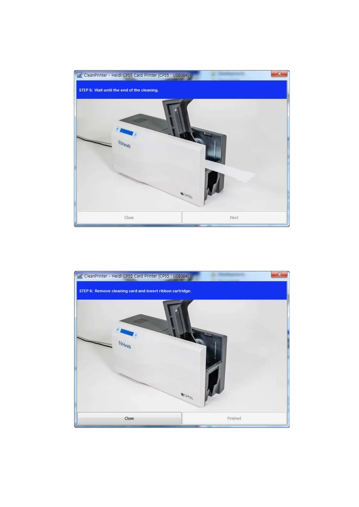 Step 6. Remove the exclusive cleaning card and install ribbon cartridge into the printer.