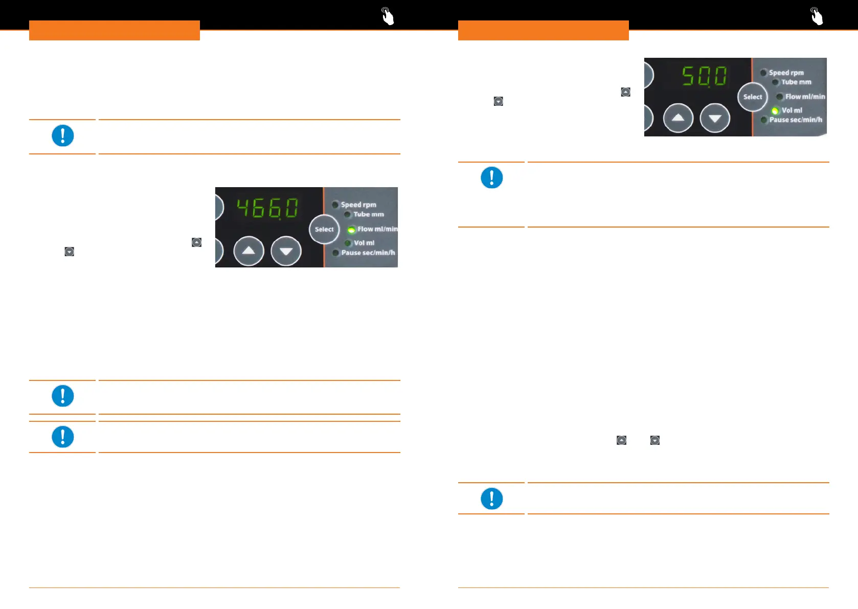 Die einstellbare Fördermenge ist abhängig von der benutzten Schlauchgröße.