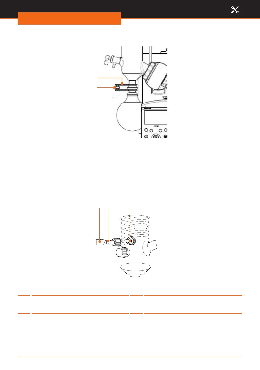 ✓ Feed and return of the coolant are connected by screwing caps onto glass threads.