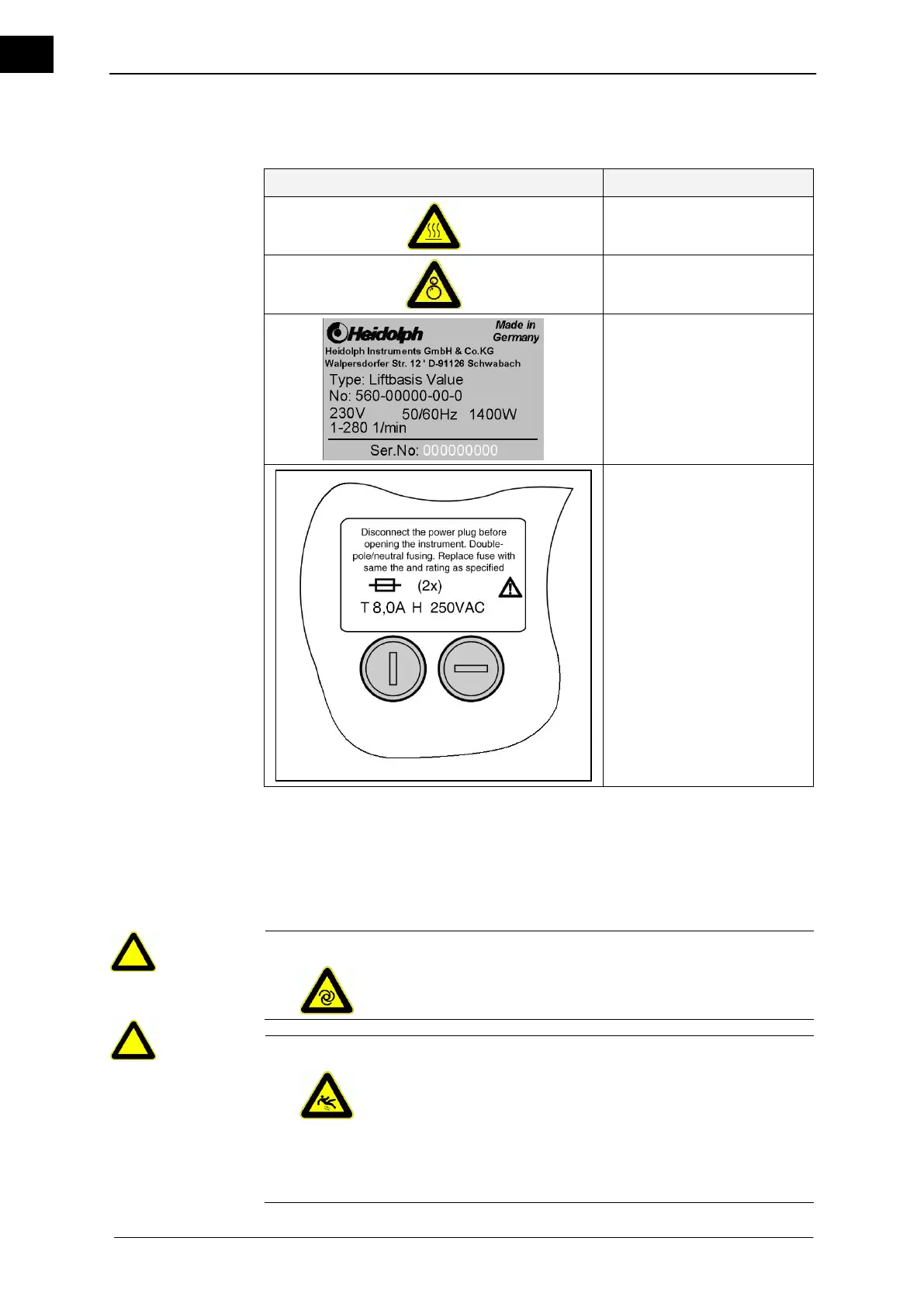 Table 2-1: Signs on the equipment