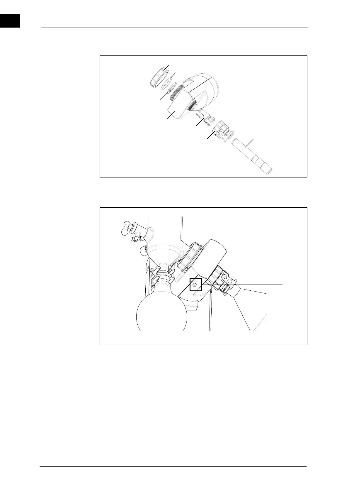9. Manually tighten the vapor tube coupling clamp (Figure 4–7 (6)) with the threaded