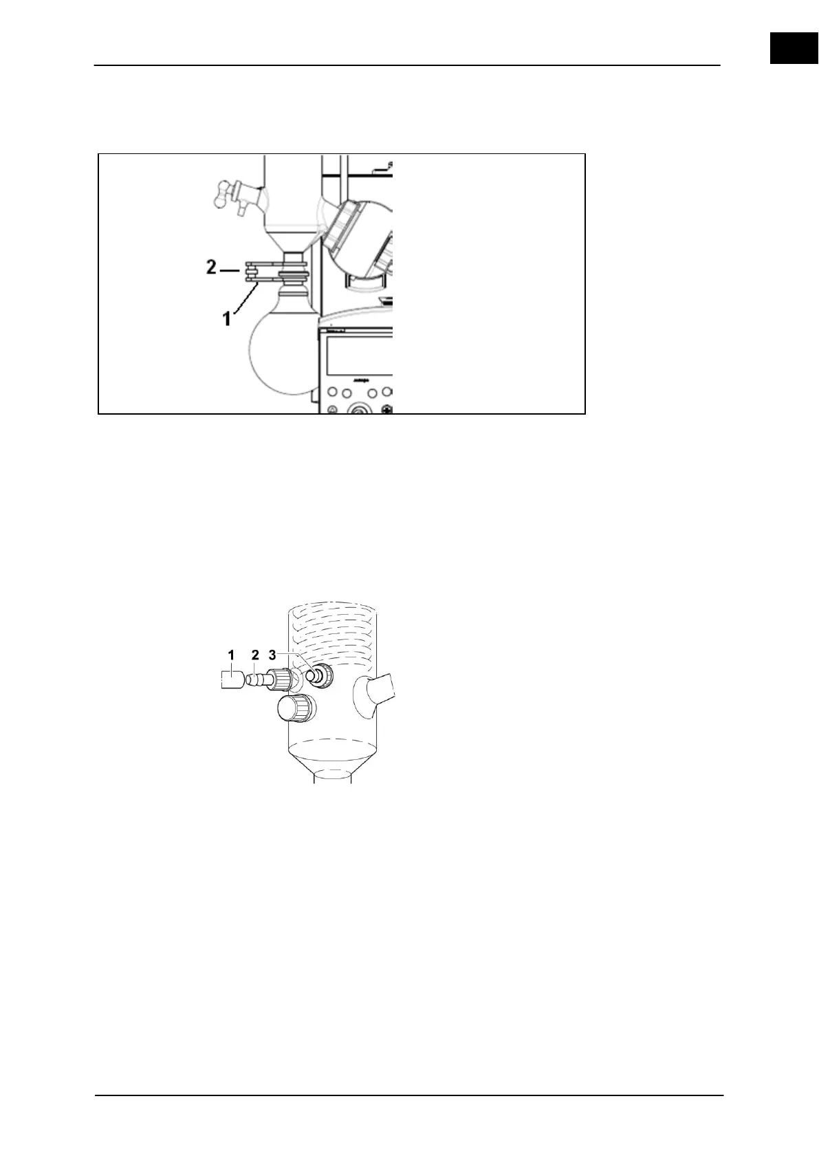 1. Hold the receiving flask with the ball-socket clamp KS 35 (1) to the condenser.