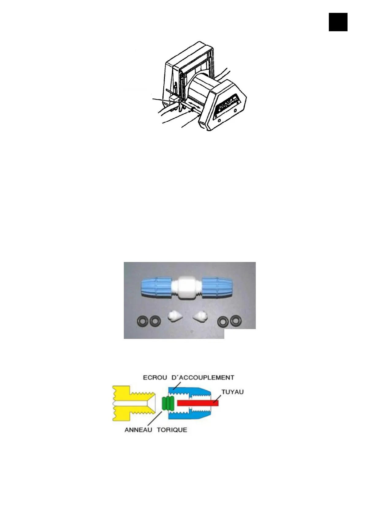 Utiliser ici les anneaux toriques fournis avec l'appareil. Placer le tuyau comme indiqué dans