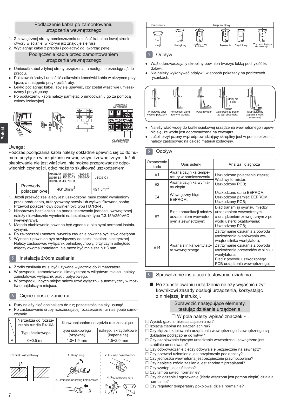 ● Jeżeli przyłączony wąż odprowadzający skropliny jest w pomieszczeniu,