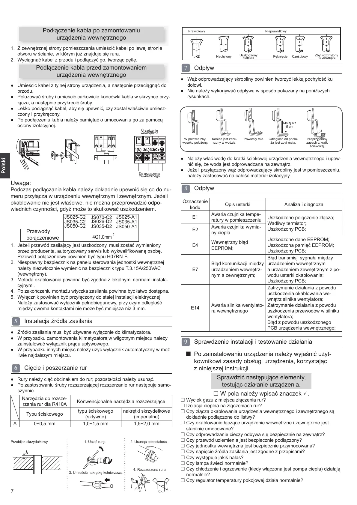 ● Jeżeli przyłączony wąż odprowadzający skropliny jest w pomieszczeniu,