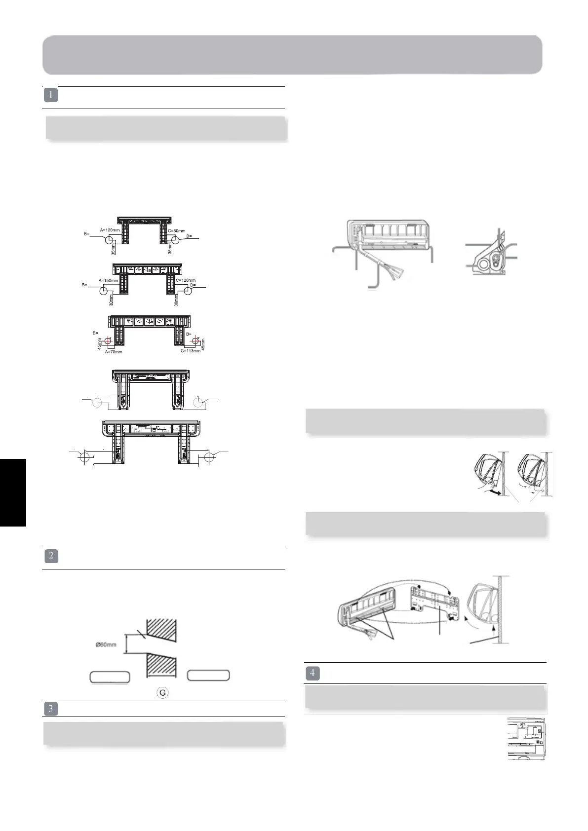 3. Die Wandbohrung A/B mit dem Messband festlegen.