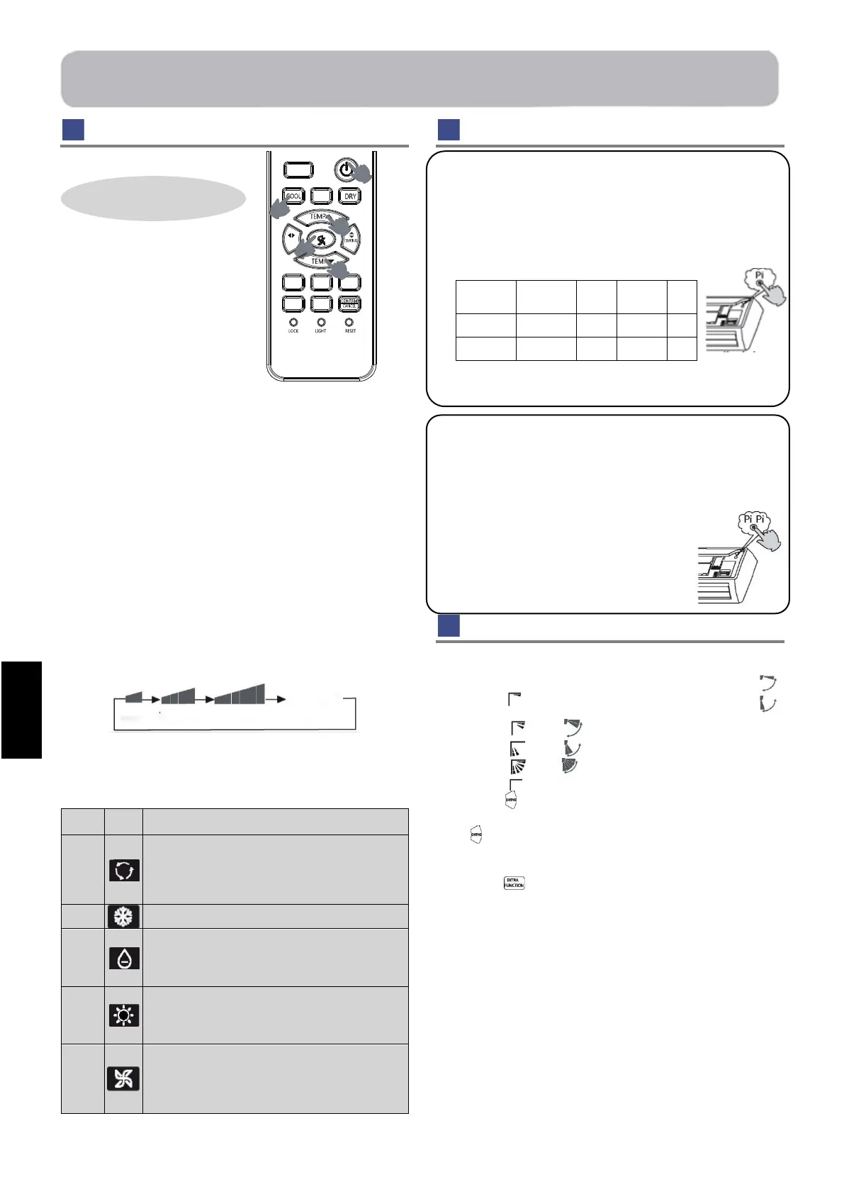 Die Taste FAN drücken Bei jeder Betätigung der Taste