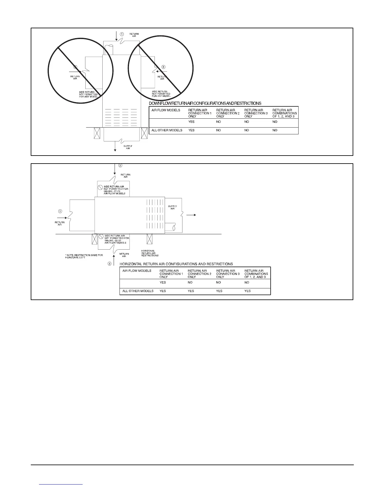 Figure 20 Horizontal Return Air Configurations and Restrictions