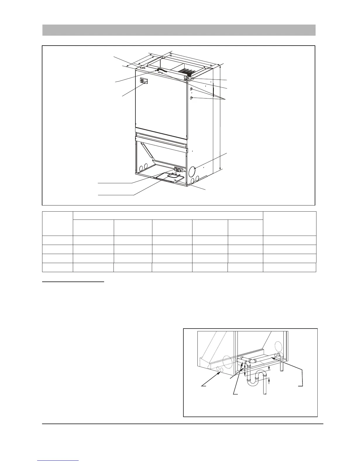 bottom of unit for condensate trap. (See