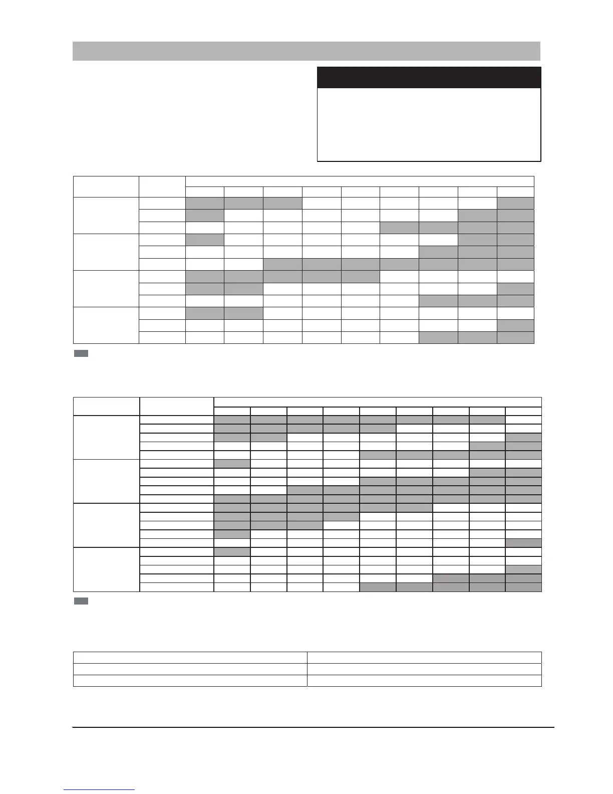 --- Shaded boxes represent airflow outside the required 300-450 cfm/ton.