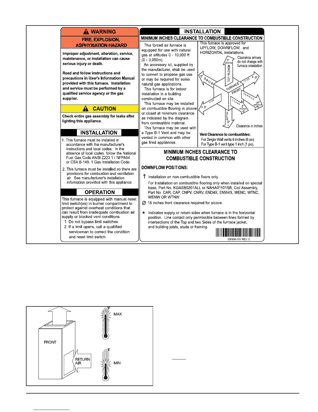 This furnace is designed for minimum continuous return−air