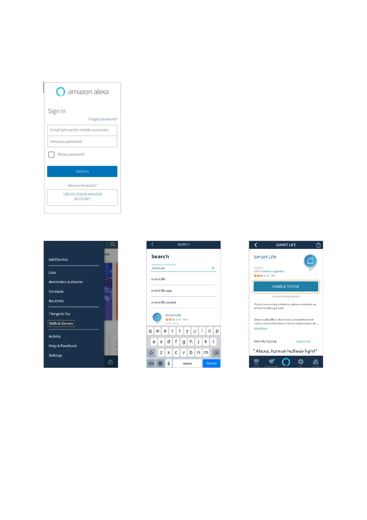 2. Wählen Sie Skills and Games aus, suchen Sie nach Smart Life und ENABLE TO USE.