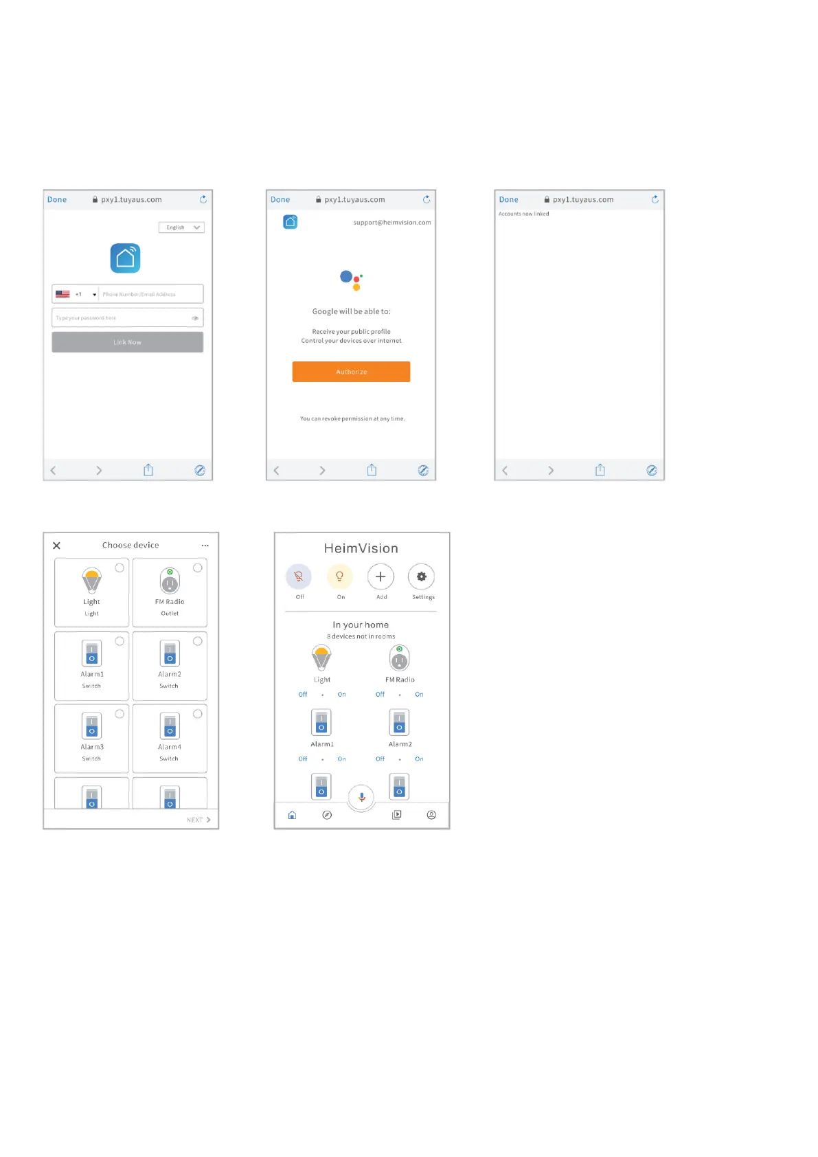 "Accounts now linked" nach einer erfolgreichen Verbindung, um zur Seite "Gerät auswählen"