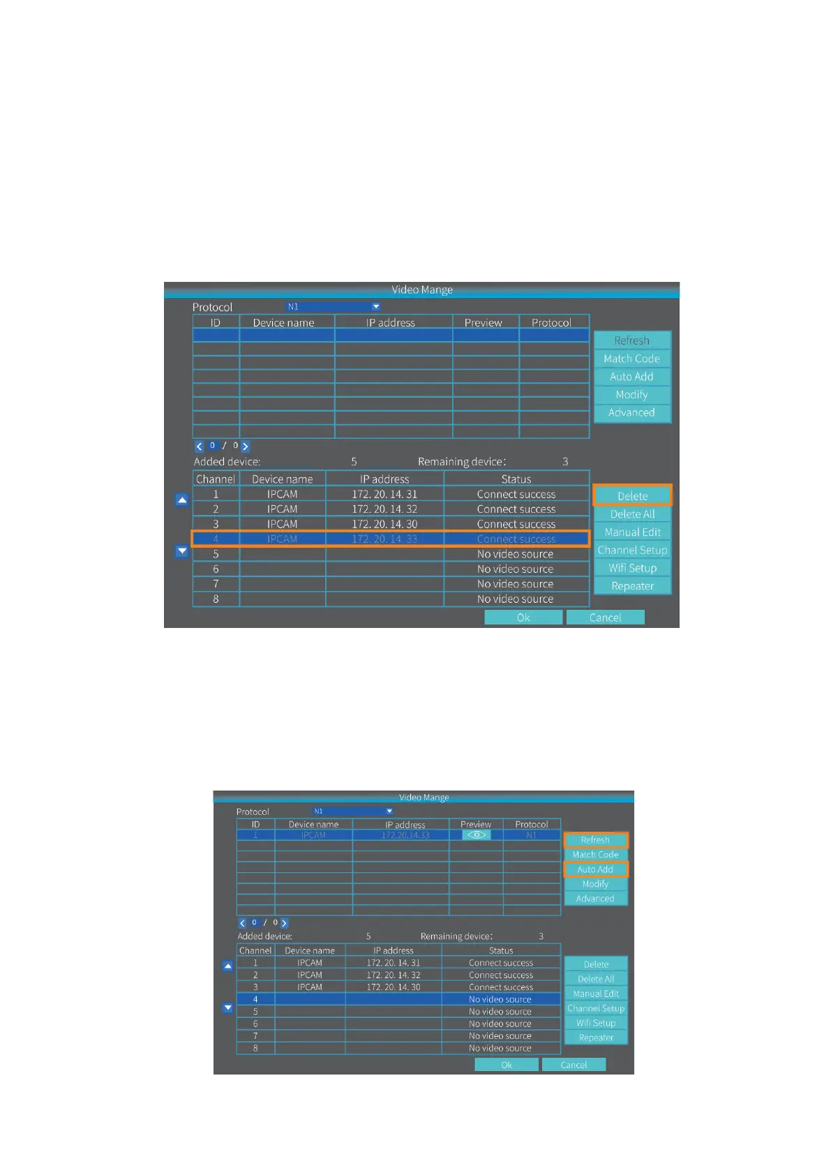 Kattintson a Frissítés gombra az IP kamera megjelenítéséhez, válassza ki, majd