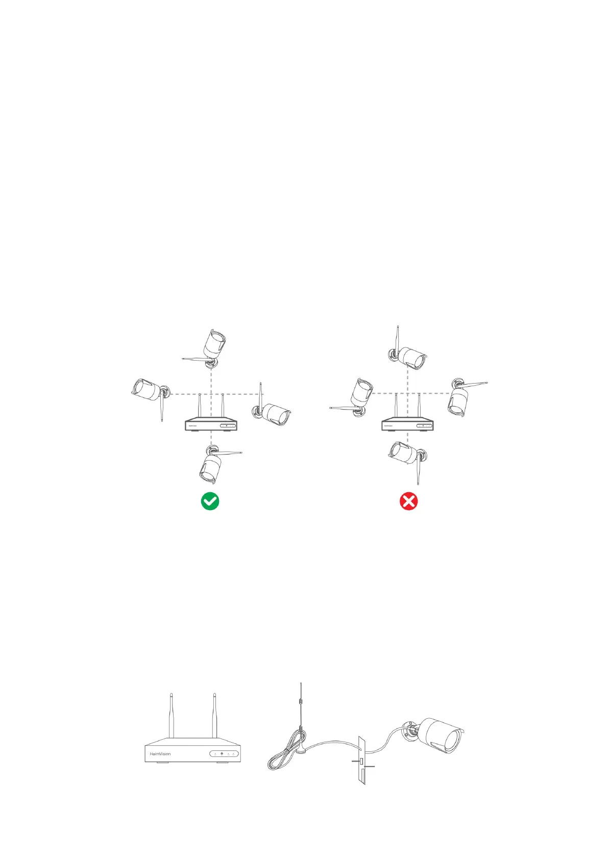 antennas of the cameras to be paralleled with the antennas of the NVR system when