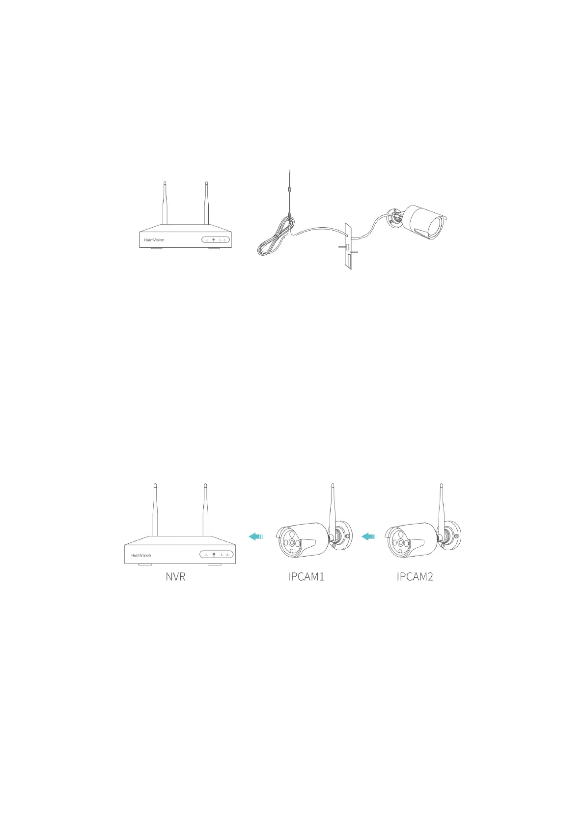 ● Wenn IPCAM2 außerhalb der WLAN-Reichweite installiert ist, IPCAM1 jedoch ein