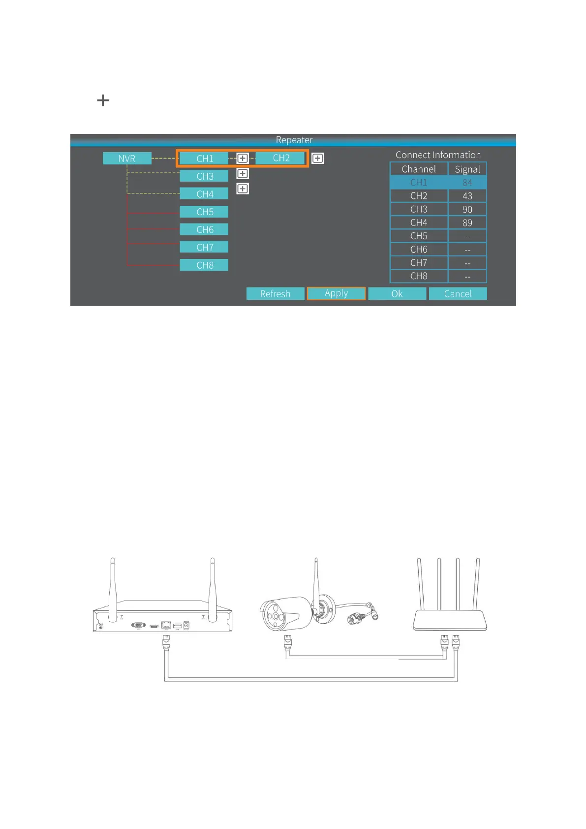 Click after CH1/IPCAM1, then select 2 to set IPCAM1 as a repeater. This means
