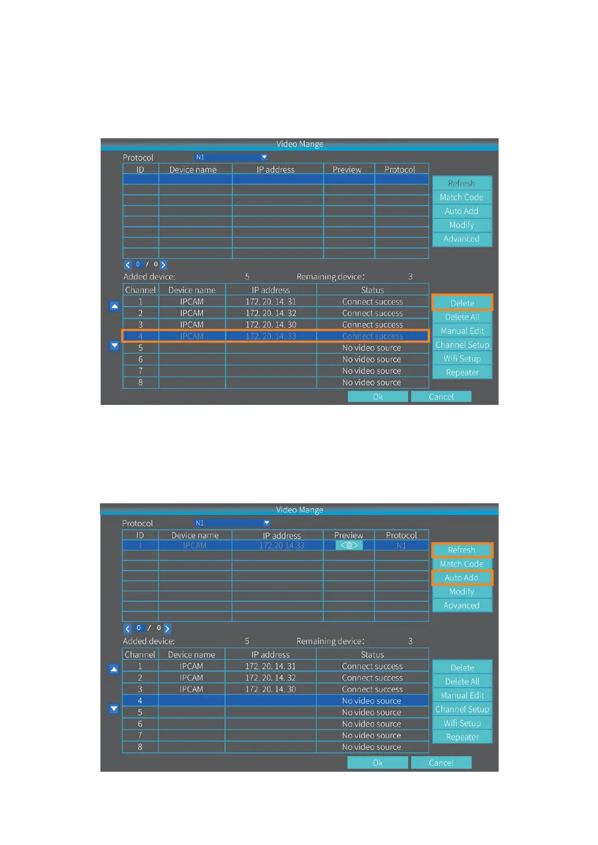Click Refresh to show the IP camera, select it, the click Auto Add to add the camera
